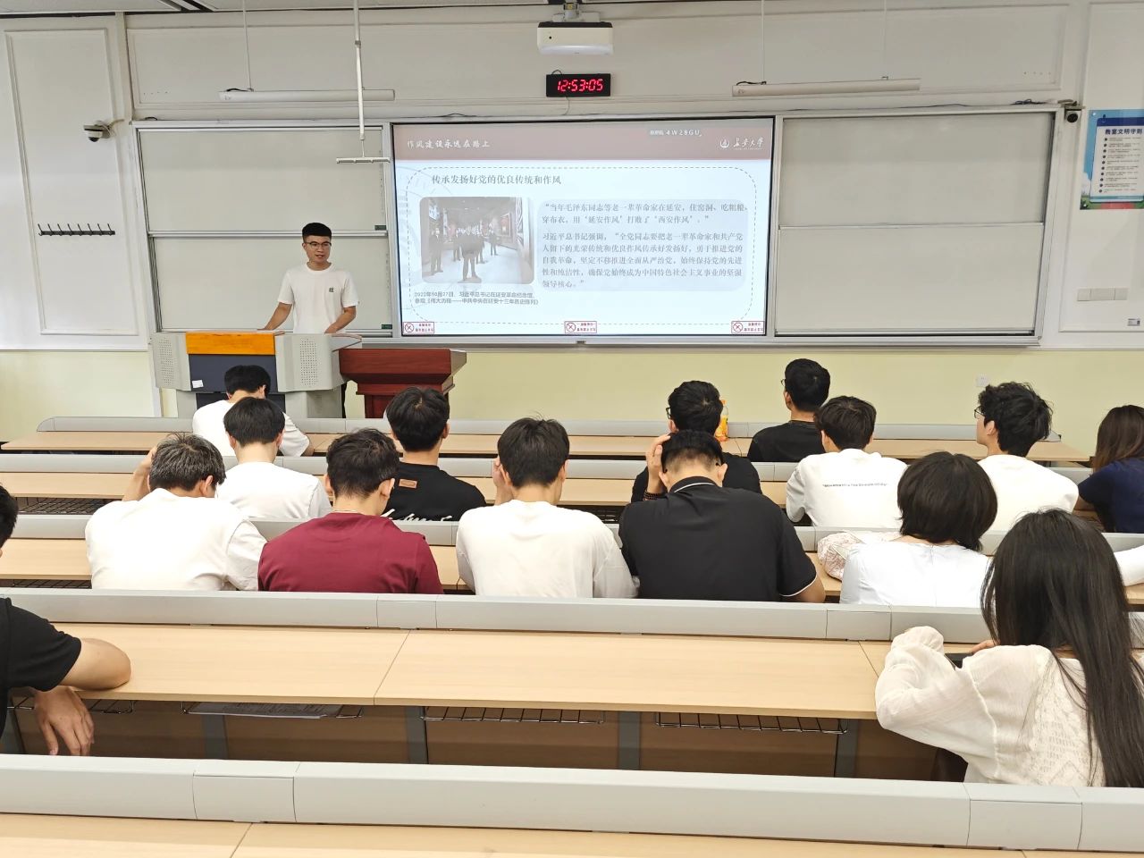 为深入学习贯彻中央八项规定精神,强化党员纪律意识,伟德国际1946源于英国2024级研究生第一党支部于2025年5月30日在南校区北院B171教室开展第3期“智控先锋,薪火相传”党史讲堂系列活动。活动由党支部书记张兴浩主讲,支部全体党员参加。