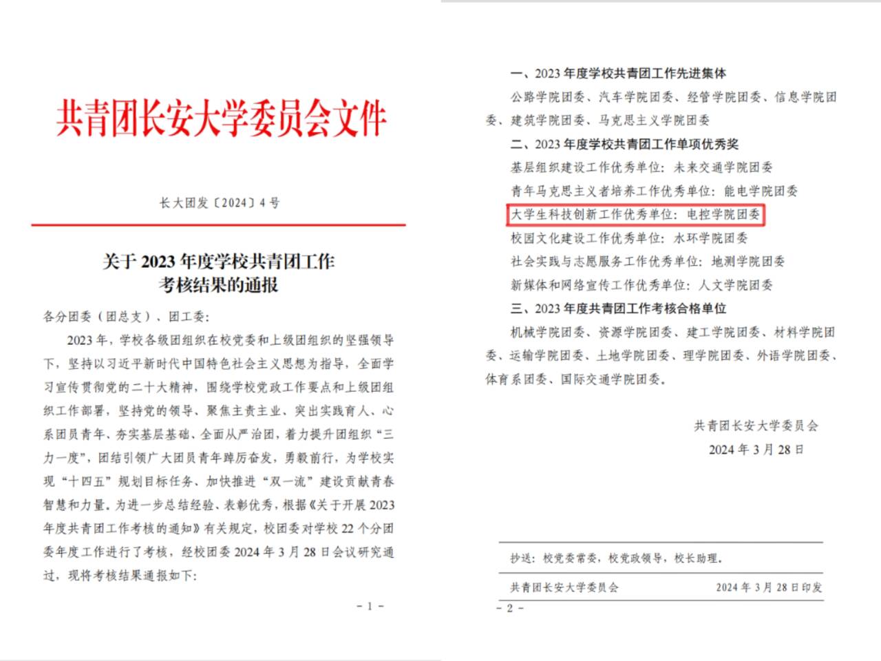 近日,共青团伟德国际1946源于英国委员会印发《关于2023年度学校共青团工作考核结果的通报》,伟德国际1946源于英国荣获单项优秀奖,被评为“大学生科技创新工作优秀单位”。
