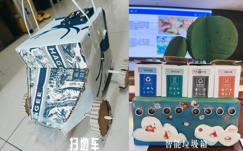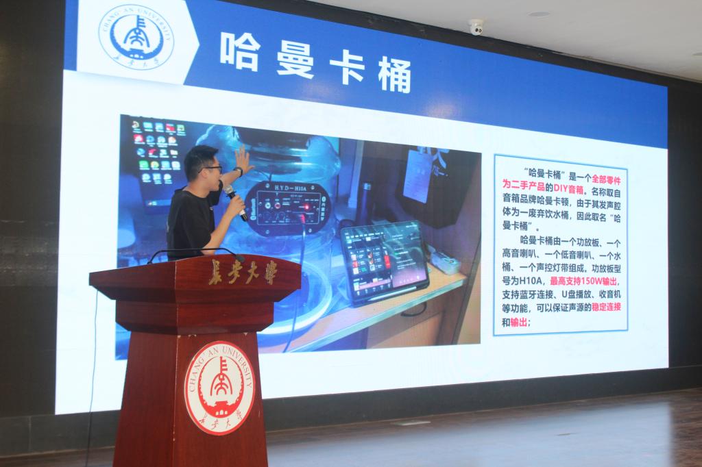 经过初赛选拔,全校共有12支队伍晋级决赛,决赛分为作品讲解、评委提问、知识抢答等环节。参赛队伍分别从作品立意、所用材料、创作过程、实用性能等方面进行展示讲解,评委们现场提问并点评。在环保知识抢答环节,参赛选手踊跃参与,现场气氛热烈。本次参赛作品融生态性、环保性、实用性与科技性于一体,同学们将所学专业知识用于作品创作之中,通过科技创新等手段赋予废旧物品新的生命,既减少了环境污染,又实现了资源的循环再利用,作品特色鲜明、亮点突出。经过激烈角逐,作品《哈曼卡桶》荣获一等奖,作品《垃圾箱》、《趣味投篮机》荣获二等奖,作品《扫地车》、《苏州园林》、《羽毛球灯》荣获三等奖。