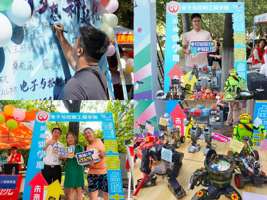 学院在新生报到处前设置了打卡签名墙,新生们纷纷拿起签字笔,在签名墙上写下自己的名字,与师长、亲友、同学合影,定格对大学生活的美好憧憬。学院迎新点展示了近年来学生在中国机器人大赛、全国格斗大赛、全国智能汽车竞赛等科创竞赛中荣获一等奖的机器人作品,让新生和家长近距离体验感受学院学科特色、科研水平和创新能力,激发了新生对专业探索的兴趣。