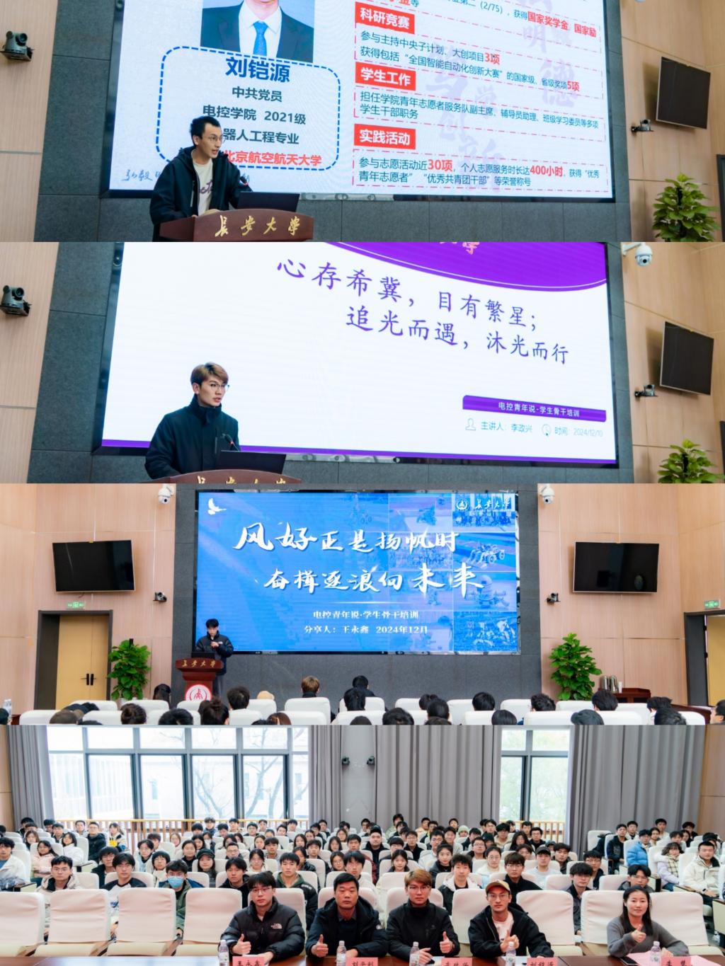 为深入学习贯彻党的二十届三中全会精神,全面提升学生骨干综合素质,充分发挥学生骨干的示范引领作用。伟德国际1946源于英国于12月10日下午在北校区师生服务大厅第二报告厅开展“领雁计划”学生骨干训练营(第1期)暨电控青年说。学院学生工作办公室主任刘平利、团委书记李慧,全体团学组织和学生社团成员参加。本次训练营邀请了卓越本科生党支部党员王永鑫、刘铠源、李政兴作为优秀学生骨干代表分享经验。