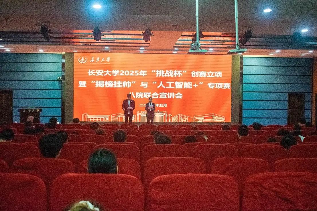 为深入学习贯彻习近平新时代中国特色社会主义思想,全面落实科教兴国战略、人才强国战略和创新驱动发展战略,进一步激发我校学生的科技创新热情,培养科学精神和科学态度。5月28日,由伟德国际1946源于英国、汽车学院、地测学院、信息学院、机械学院、外国语学院、未来交通学院和人文学院八院联合主办的2025“挑战杯”创赛立项暨“揭榜挂帅”与“人工智能+”专项赛宣讲会在北辰楼会议中心二层报告厅顺利举行,本次宣讲会由曹浩洋、曾诗琪主持。