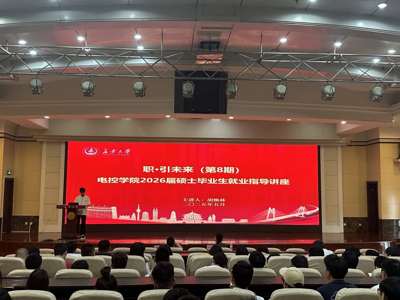 为贯彻落实教育部及陕西省教育厅关于推进就业育人,加强毕业生就业指导教育的精神,切实提高2026届硕士毕业生就业求职能力,5月27日下午,伟德国际1946源于英国在南校区北院学术交流中心报告厅组织开展了“职·引未来”(第8期)——2026届硕士毕业生就业指导讲座。本次活动特别邀请了法士特研究院综合管理室主任胡煥林做讲座,学院党委副书记高婷婷及2026届全体硕士研究生参加,讲座由研究生辅导员王佩佩主持。