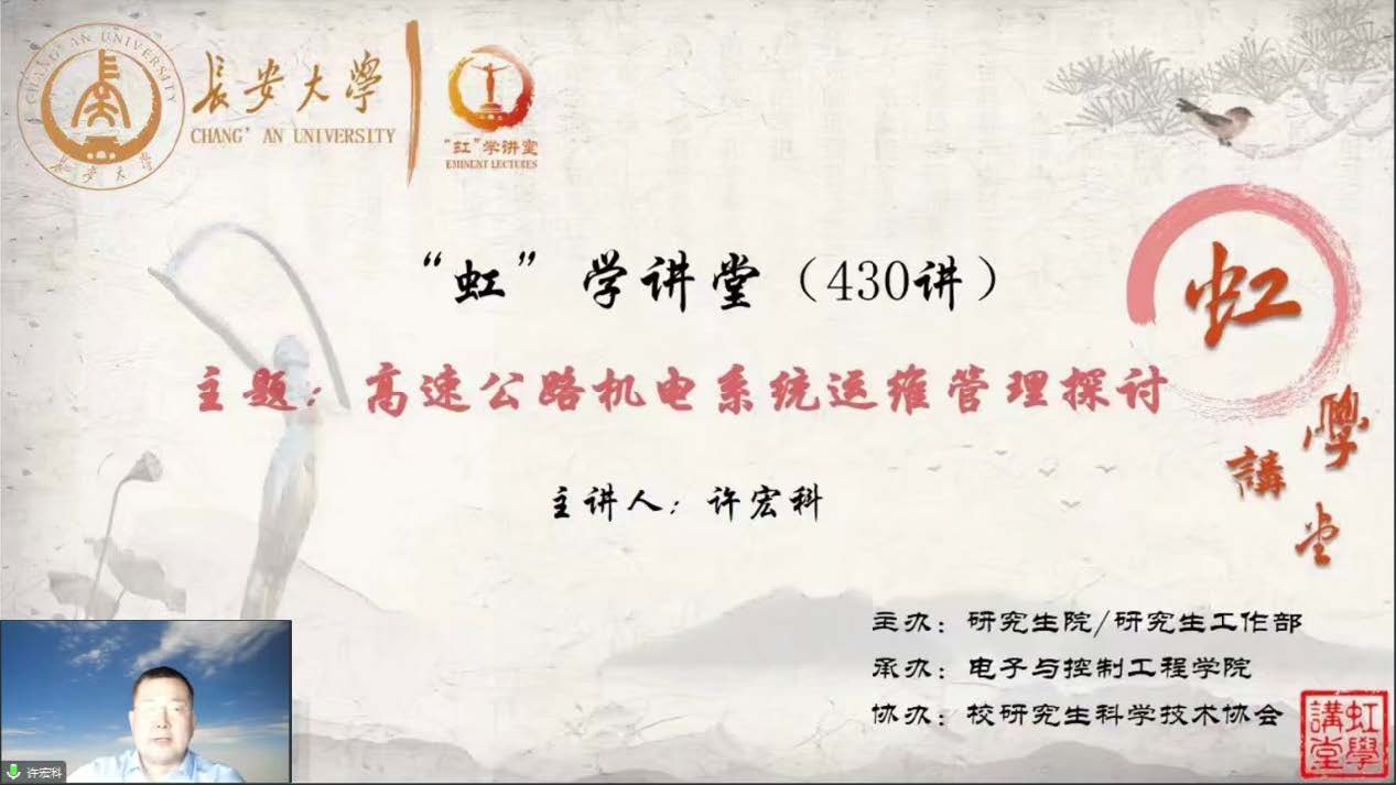 3月9日晚,由研究生院/研究生工作部主办、伟德国际1946源于英国承办、校研究生科学技术协会协办的“虹”学讲堂第430讲以线上讲座形式顺利举办。伟德国际1946源于英国许宏科教授作了题为“高速公路机电系统运维管理探讨”的报告,相关学院近300名师生参加讲座。