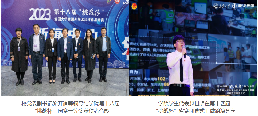 2023年度,学院在学校第十三届“挑战杯”竞赛中获特等奖2项、一等奖1项、二等奖4项、三等奖3项。在第十四届陕西省“挑战杯”课赛中学院获特等奖1项。在第十八届全国“挑战杯”竞赛中学院获主体赛一等奖1项、“黑科技”行星级奖项2项。在2023年全国大学生机器人科技创新交流营暨机器人大赛中学院1支队伍荣获国家级二等奖。