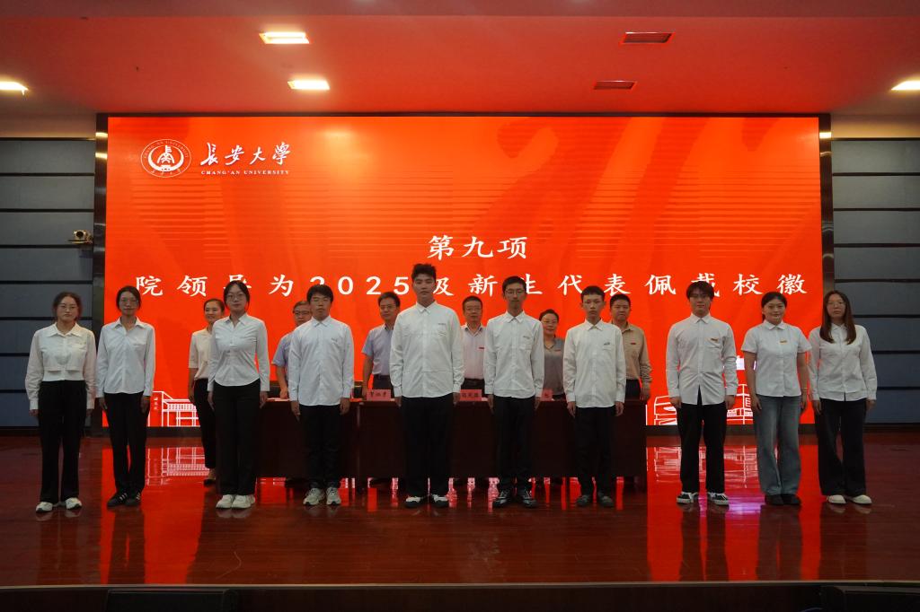 学院领导为2025级研究生和本科生新生代表佩戴校徽。