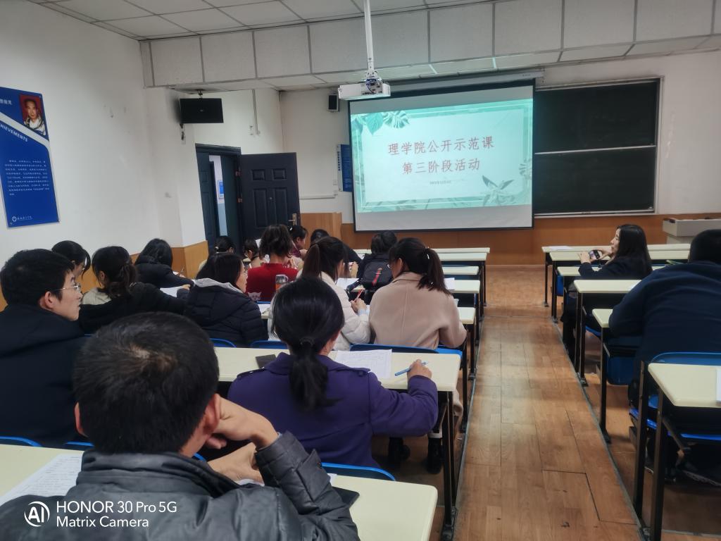 为加强教师间的教学交流,调动教师的教学积极性,发挥优秀课程教学的示范作用,Beat365唯一官方网站于12月3日下午,在南308教室,举行了本学期公开示范课第三阶段活动。本次公开示范课共有5名副高级职称的教师主讲,全体教师参与了交流研讨。