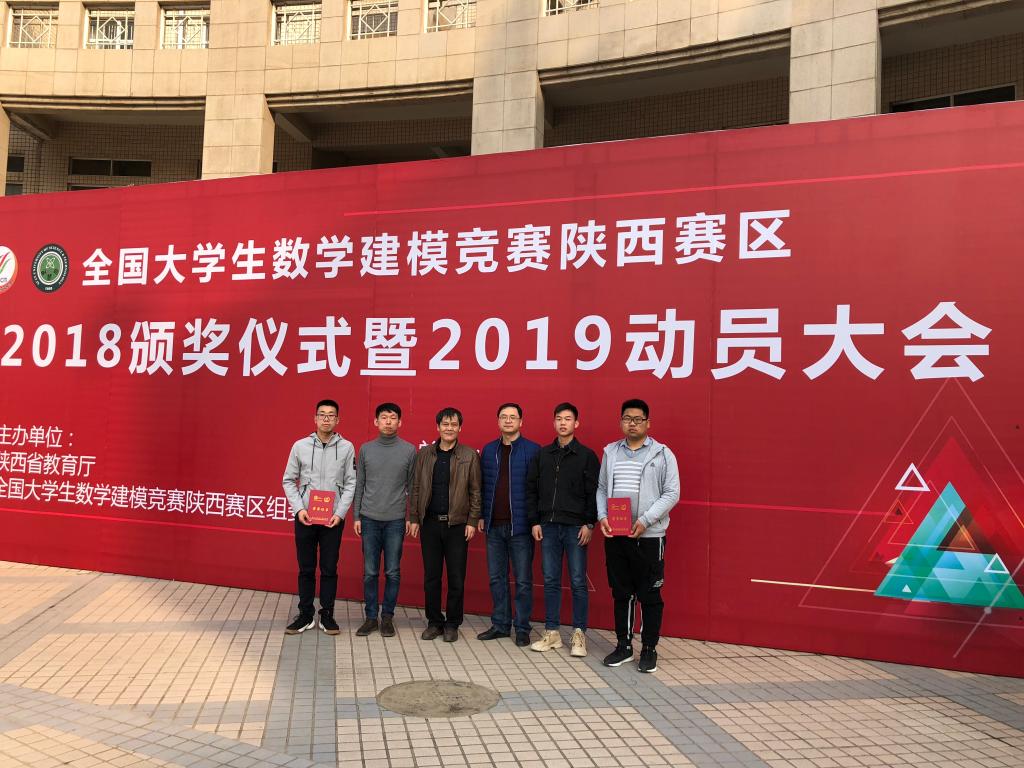 3月9日下午,“高教社杯”全国大学生数学建模竞赛陕西赛区2018颁奖仪式暨2019动员大会在西安科技大学临潼校区隆重举行,Beat365官网Beat365唯一官方网站院长岳忠玉、创新创业学院副院长陈长征,指导教师代表张蒙及三位参赛学生代表何涛、陈升强、徐杰参加了此次大会。Beat365官网在比赛中再创佳绩,荣获本科组全国二等奖2项,陕西省二等奖8项。