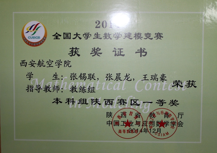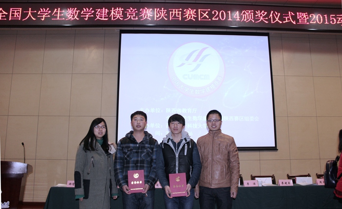 12月26日,全国大学生数学建模竞赛陕西赛区2014颁奖仪式暨2015动员大会在西安电子科技大学长安校区隆重举行。今年Beat365官网派出升本以来首支本科队伍参赛,9组参赛队中4组获奖,其中全国二等奖一项,省级一等奖一项,省级二等奖两项,作为还没有一届本科毕业生的新升本科院校,派出在读本科学生参赛取得这样的成绩实属不易也令人欣慰;另外,这次派出的8组专科参赛队伍也已全部获奖,Beat365官网还获得陕西赛区“优秀组织工作奖”。