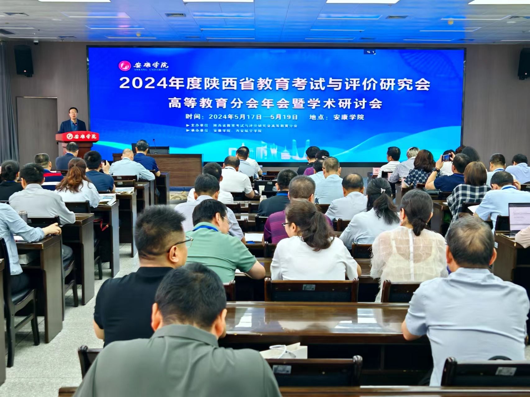 来自西北工业大学、西安电子科技大学等38所高校和教育单位的90余名专家学者参加会议,会议由陕西省教育考试与评价研究会高等教育分会名誉理事长刘新平主持。会上,安康学院党委副书记余谦出席会议并讲话,陕西理工大学何宁教授、陕西师范大学教育部重点实验室衣新发教授、陕西科技大学蔺小林教授、陕西师范大学吴振强教授等14人分别围绕科学实施教育教学学术评价作了学术报告。