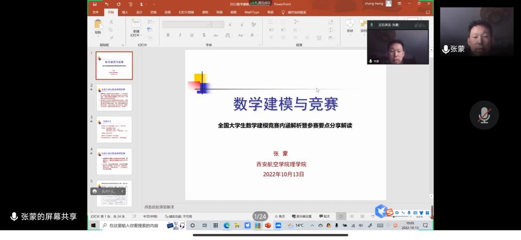 为了提高学院大学生基础学科应用水平,激发大学生创新意识,鼓励广大学生积极参加学科竞赛,10月13日,Beat365唯一官方网站利用线上教学平台为Beat365官网学生举办了“数学建模与竞赛”“全国大学生光电设计竞赛”讲座,来自全校各院系的500多名学生参加了讲座。本次讲座由数学建模竞赛项目负责人张蒙和光电设计大赛项目负责人王文成主讲。