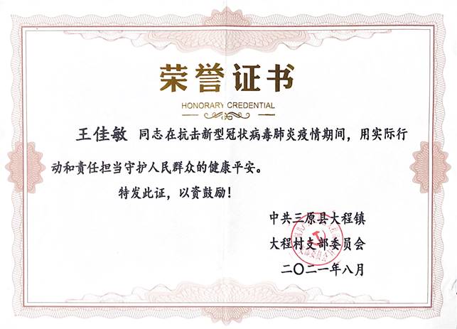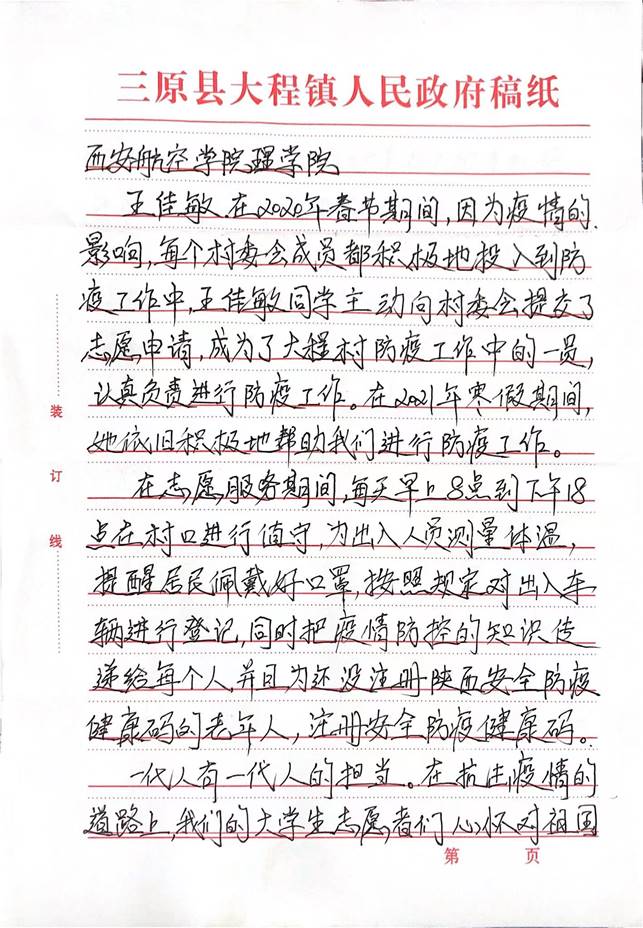 在志愿服务期间,王佳敏同学每天准时在防疫工作点进行值守,宣传疫情防控的知识,提醒出入人员佩戴口罩并为其测量体温,积极地帮助村中的老年人注册陕西安全防疫健康码。王佳敏同学表示,在疫情爆发时,第一时间想的是如何尽自己所能为疫情防控做出一点点贡献,因为这是一名党员该有的责任。