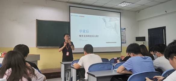讲座一开始,主讲师便直入主题,对同学们抛出一个问题:毕业后你要做什么?要不要考研;要去大公司或小公司;选择那种行业?深刻的问出了同学们对自己发展前景的迷茫。接下来,主讲师将这三个问题拆分成三个部分进行详尽的解答,让同学们对于毕业后不同的抉择有了更加深刻的思考。讲座最后,主讲师做出总结:选择比努力更重要。向同学们阐述了如何使自己找到最适合,最有前景的工作的方法,受益匪浅。