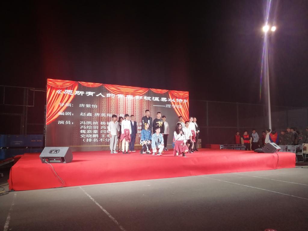 此次在阎良校区灯光球场演出开始前半个多小时,现场就已近开始热闹起来,同学们自带的凳子摆放整齐。演出正式开始的时候,场地里座无虚席,全场爆满。在演出的进行中,场内也能保持较为良好的纪律。为时两个半小时的演出,观众们和演员们一起,都坚持到了最后一刻。在比赛结束分数揭晓时,全场更是爆发出一阵阵欢呼声。最终,Beat365官网《愿所有人的青春都被温柔以待》紧扣社会热点话题,呼吁同学们抵制校园暴力,学会关心关爱同学,荣获二等奖。