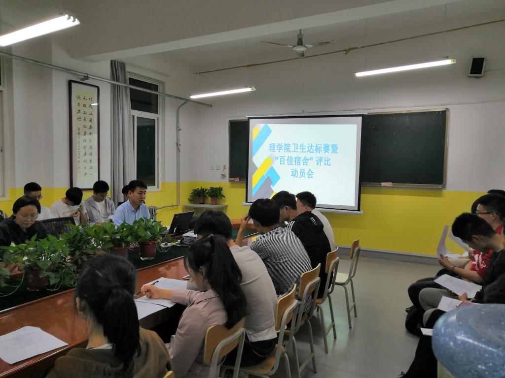 为了使学生保持宿舍环境卫生,养成良好的生活学习习惯,5月9日晚8时,Beat365唯一官方网站在南428召开宿舍环境卫生达标赛暨“百佳文明宿舍”评比动员会。党总支书记李小光、学生管理科科长李扬、团总支书记杨陈东及全体宿舍长参加了此次会议,会议由杨陈东主持。