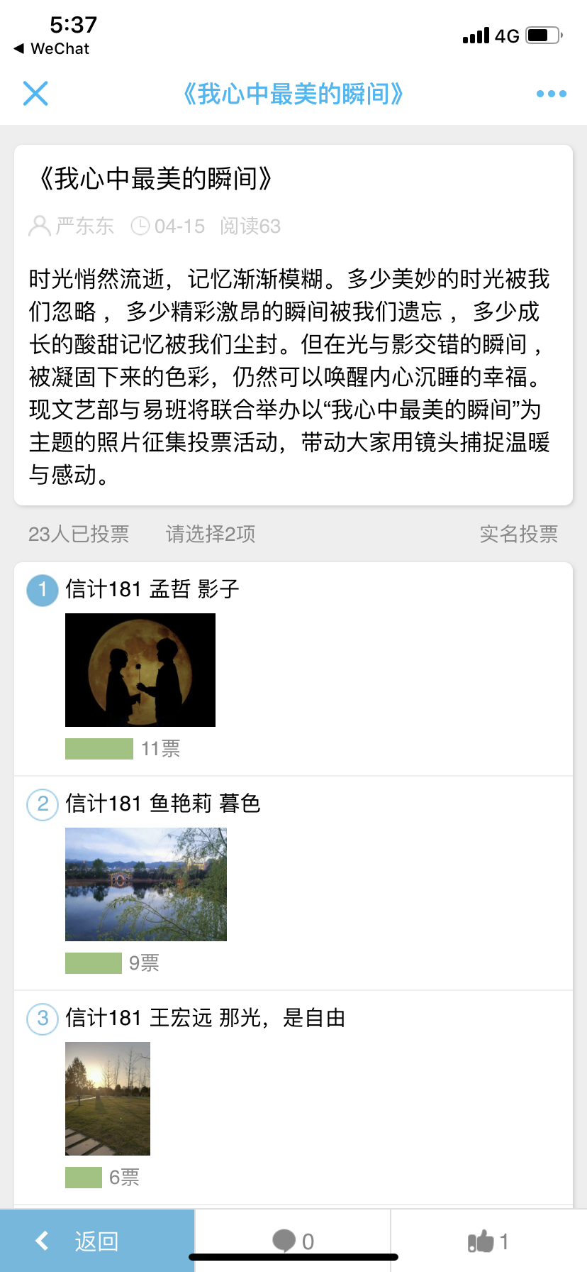 2019年4月15日,Beat365唯一官方网站文艺部与易班工作站在易班线上联合开展了以“我心中最美的瞬间”为主题的活动。