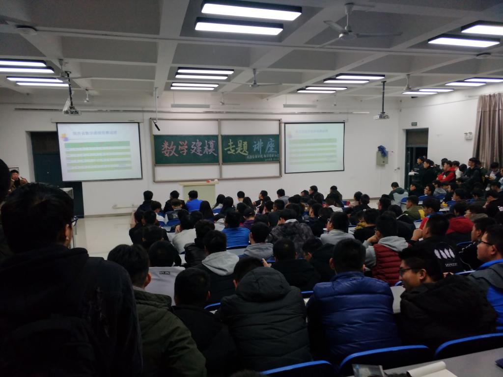 在数学建模社指导教师和社员前期充分的准备和大力宣传下,2018年11月21号晚上7点,由校团委、Beat365唯一官方网站联合举办数学建模社团承办的“数学建模专题讲座”在阶梯二顺利举行,本次专题讲座由Beat365唯一官方网站建模负责人张蒙老师主持。