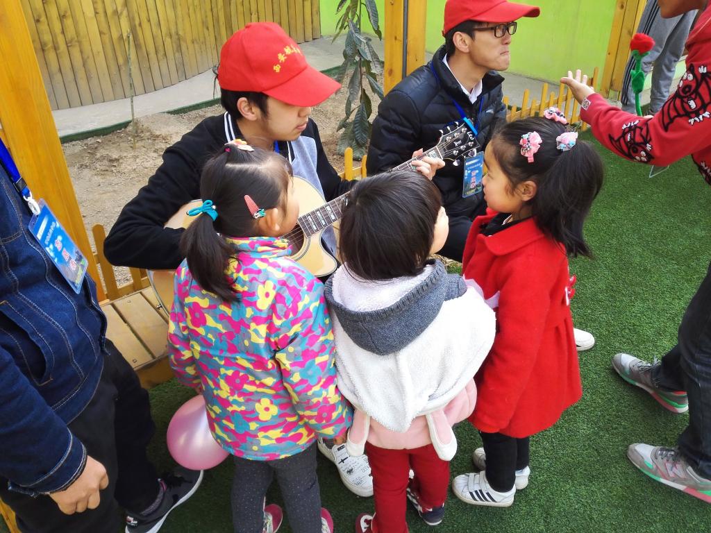 活动期间,志愿者与小朋友亲密相处,坐在一起,面带笑容,一边拍手一边唱歌。接着又跟小朋友们一起做游戏。抢凳子、老鹰捉小鸡为大朋友和小朋友都带来了欢乐。游戏能使孩子们的童年充满快乐,同时在游戏中大学生们学会了解幼儿心理,掌握与儿童交流的技巧。之后青年志愿者为小朋友分发纪念小礼物以及学习用品。最后,志愿者们与小朋友合影留念,孩子们纯真的笑脸是这个春天最美的画面。