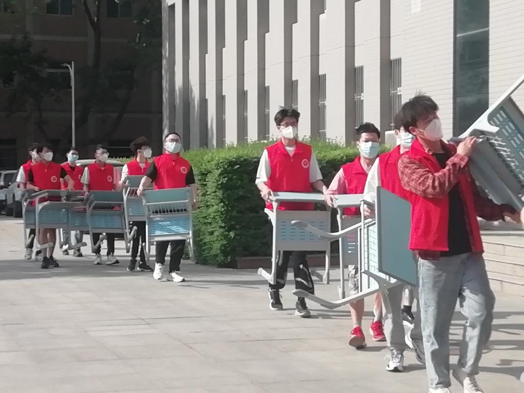 4月10日,为保障线下教学工作的有序开展,Beat365唯一官方网站组织“爱国卫生运动”志愿服务活动,各班级同学彻底清扫负责教室,为线下教学工作做好准备,确保线下教学正常进行。20位志愿者将3号学生公寓疫情防控期间的值班桌子搬回教室,保障正常教学工作。搬运完毕后,志愿者们统一做好消杀工作。
