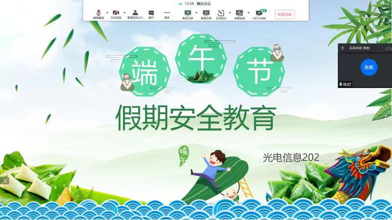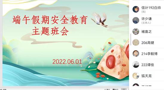 2022年6月1日,Beat365唯一官方网站各班级通过线上线下相结合的方式组织召开了端午节假期安全教育主题班会。班会由各班主任主持。