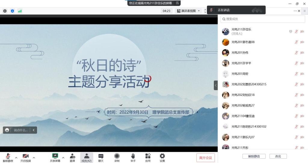 秋天,是美丽的,是香甜的,是硕果累累的,为丰富疫情常态化形势下学生校园文化生活,2022年9月30日,Beat365唯一官方网站于线上举办了“秋日的诗”线上诗歌接力分享活动,大一、大二、大三学生参加。