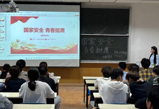会上,主持人围绕“国家安全 青春挺膺”主题详细介绍了国家安全的重要性,深入学习了国家安全相关的法律法规,增强了同学们对国家安全的认识,也丰富了大家对国家安全相关知识的储备。随后同学们就国家安全局势、依法维护国家安全、青年学子如何履行好保卫国家安全的神圣职责和光荣义务等话题展开了深入的交流与讨论。同学们纷纷表示:“青春是国家和民族的未来,也是维护国家安全的重要力量。作为新时代的青年,我们要将个人理想融入国家发展大局,用青春和智慧为国家安全贡献力量。”