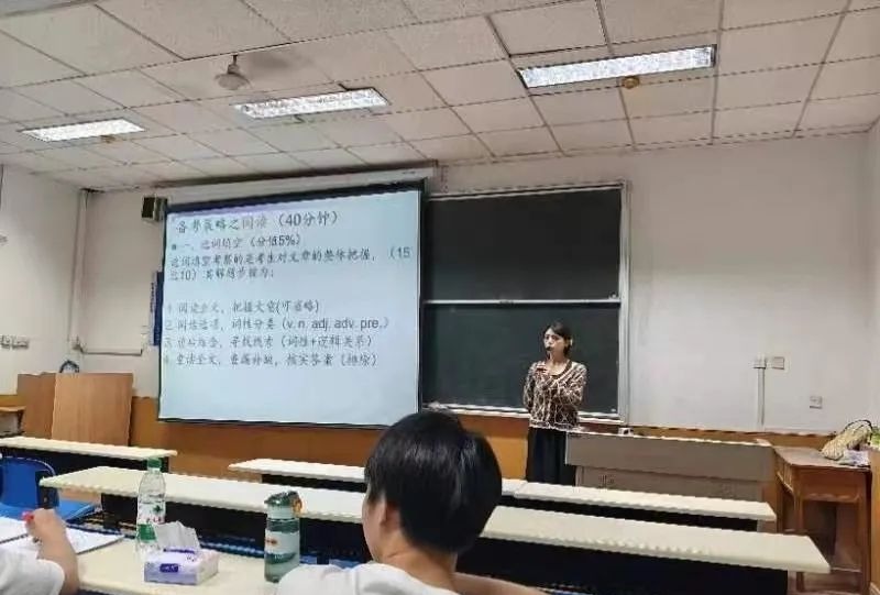 讲座上主讲老师从备考策略、题型解析、技巧分享三个角度来剖析目前四六级考试水平及要求。首先,老师提出要做好复习规划和时间管理,更高效的学习。其次,老师针对四六级考试的各个题型,如听力、阅读、写作、翻译等,详细解析答题技巧和方法。最后,老师分享自己的考试经验和答题技巧,帮助学生提高应试能力。