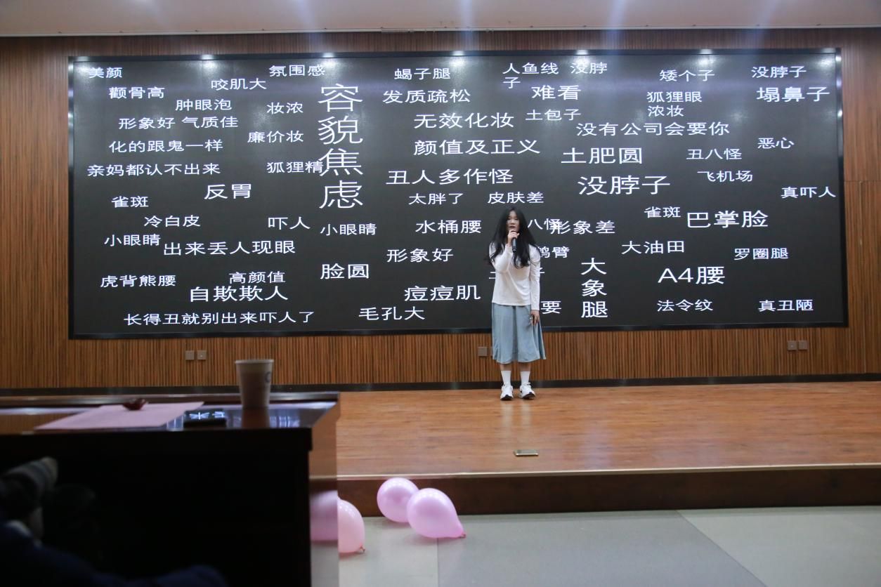 心理部带来的心理剧《美丽人生》无疑是晚会的一大亮点。该剧通过生动的表演和深刻的剧情,展现了大学生在面对容貌焦虑时如何积极应对,传递了积极向上的正能量,赢得了现场观众的一致好评。