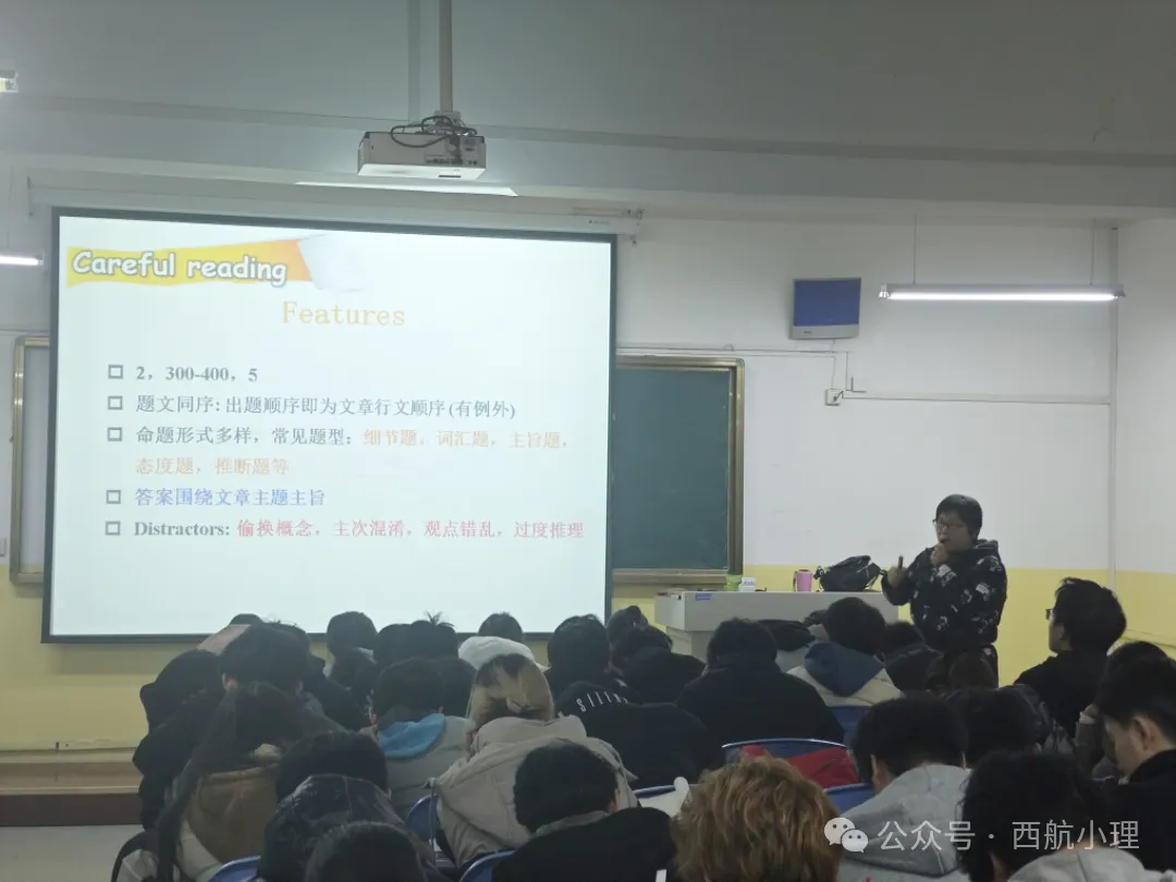 为帮助Beat365官网学生更好地应对英语四六级考试,提升应试能力,Beat365唯一官方网站于2024年12月9日在南楼333教室举办英语四六级考试专题讲座,褚喜之老师作考前全方位指导。