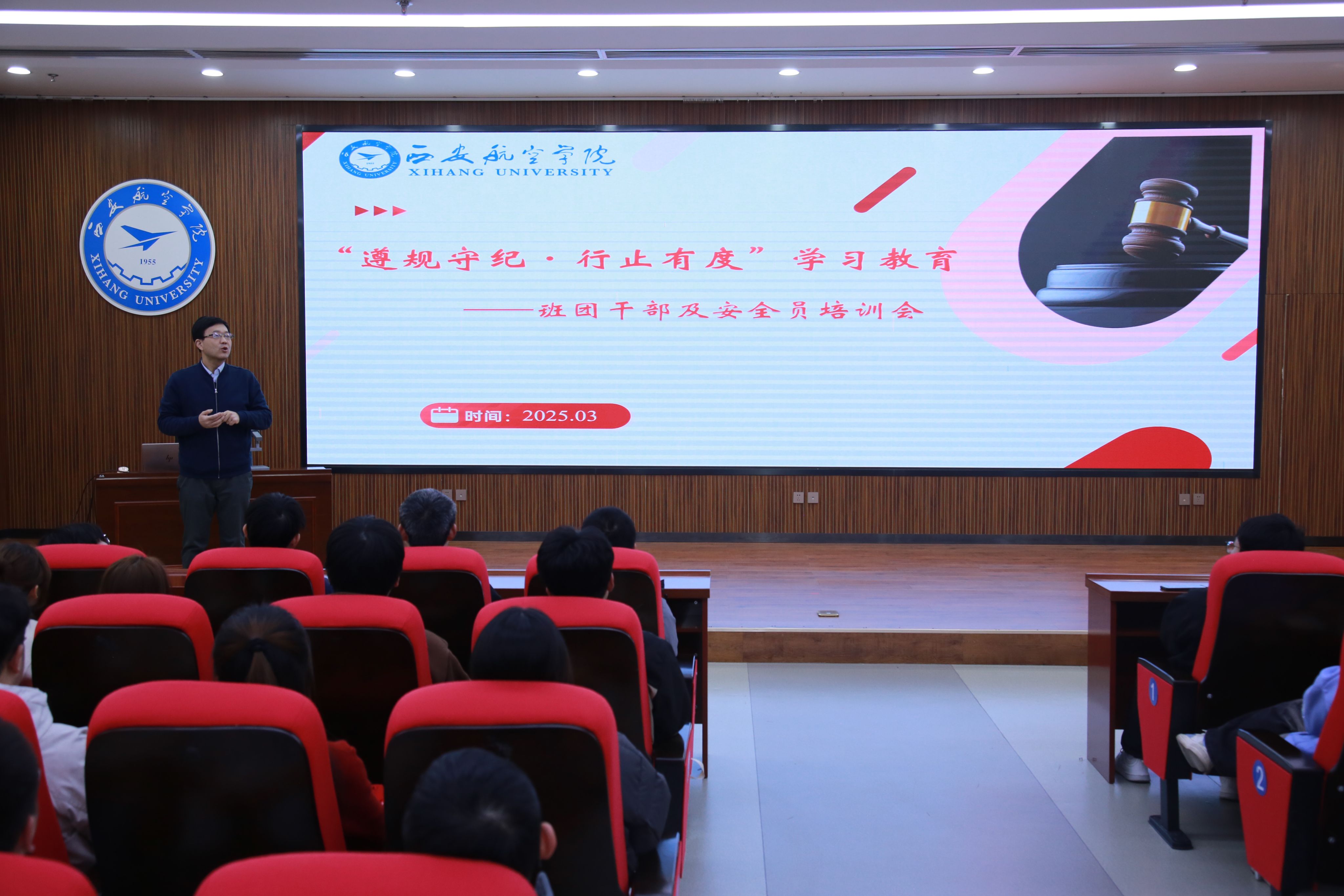 为确保本次学习教育取得实效,学院首先组织学工队伍学习研讨,制定活动方案,做到组织得当。其次于3月14日召开班团干部及安全信息员培训会,党总支书记胡红亮作动员讲话时指出,纪律不仅是青年学生成长成才的基本要求,更是构建和谐校园的重要保障,他要求班团干部和安全信息员等骨干带头树立纪律意识,要当纪律的践行者、监督者与传播者,在校园文化建设和文明创建中充分发挥先锋模范作用,并通报学院近期发生的个别事件和风险及处理结果。