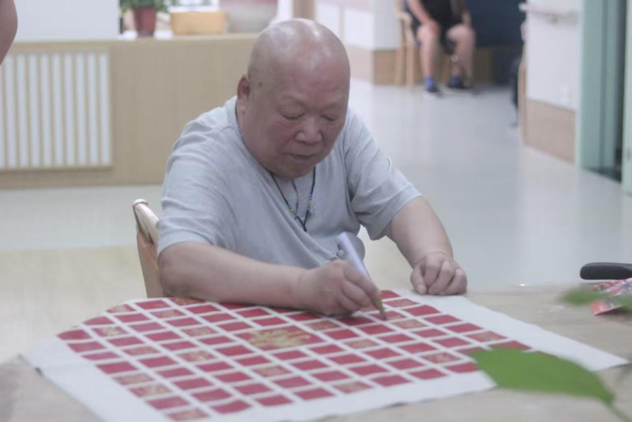 随着大家一个个在百寿图上写下“寿”字,整幅百寿图渐渐丰满起来篆隶楷行草各体皆有,或工整或洒脱,每一笔都带着书写者的温度。老人们和实践队队员围在百寿图前,指点着哪个字有气势,哪个字显秀气,眼里的光映着图上的笔迹,格外动人。“原本只是想让老人们多些乐子,没想到大家这么投入。” 照护中心负责人看着眼前的场景,语气里满是欣慰。实践队队员们也有同感,一位队员说:“和爷爷奶奶一起在百寿图上写字,感觉不是我们在付出,反而是他们让我们看到了对生活的热忱。”