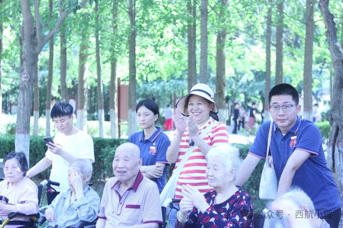 前往公园的路上,志愿者们有序列队,推着各自负责的爷爷奶奶稳步前行。阳光毫无保留地倾洒而下,给老人的银发镶上金边,他们脸上漾开的笑意,比阳光更耀眼。路过的行人纷纷驻足,或报以微笑,或竖起大拇指,这无声的认可,似一股暖流,流淌在每个人心间,成为志愿路上最美的注脚。