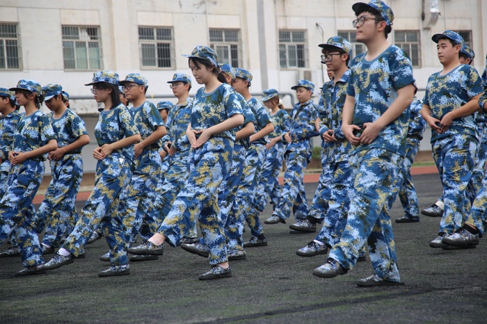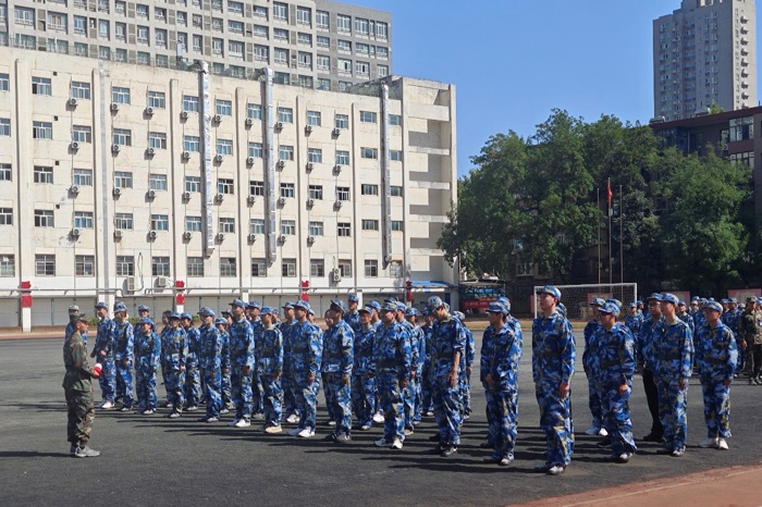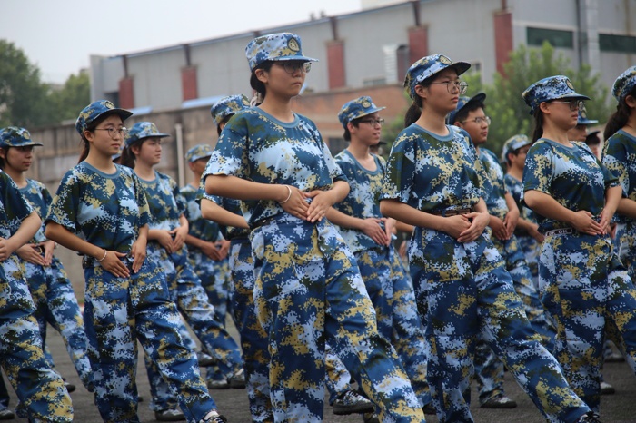 训练场上,口令声、脚步声整齐划一,构成了校园里最富活力的旋律。从基础的队列训练、稍息立正,到连贯的齐步正步、方阵合练,新生们始终保持专注。面对烈日暴晒与重复训练,没有人轻言放弃:汗水浸透衣衫,便抬手快速擦拭;动作不够标准,便利用休息时间主动向教官请教。