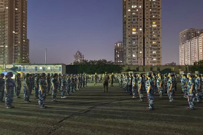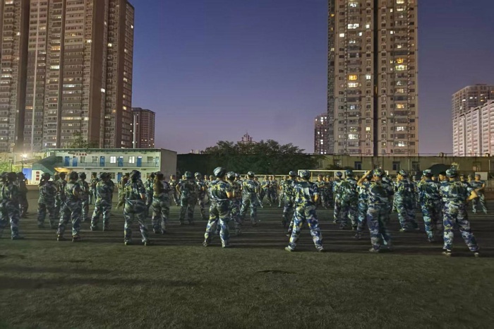 而在不远处的匕首操方阵训练区域,同样是一片热火朝天的景象。新生们手持特制的训练匕首,目光坚定,精神抖擞。在教官的口令声中,他们熟练地完成着一个个动作,从持匕姿势到刺、挑、劈、砍等攻击动作,再到转身、移步等战术动作,每一个细节都处理得恰到好处。当全体成员齐声喊出“杀!杀!”的口号时,那震天的气势仿佛要将一切困难都踩在脚下。