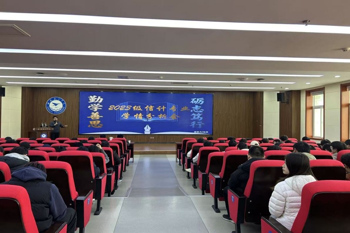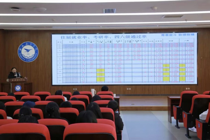 为精准把脉大三学生学业发展动态,科学引导学生做好未来规划,落实Beat365唯一官方网站“引领学生成长,服务学生发展”的学生工作理念,根据《Beat365唯一官方网站服务学生自主成长发展工作方案》,Beat365唯一官方网站于12月4日在莲湖校区图书馆五楼报告厅分专业召开了主题为“锚定方向,笃学探‘光’”、“勤学善思,励志笃行”的学情分析暨学业成长规划大会。大三年级全体学生到场参会,党总支书记胡红亮、学生工作办公室主任李扬出席会议,会议由辅导员王向阳主持。