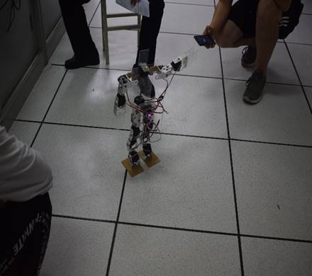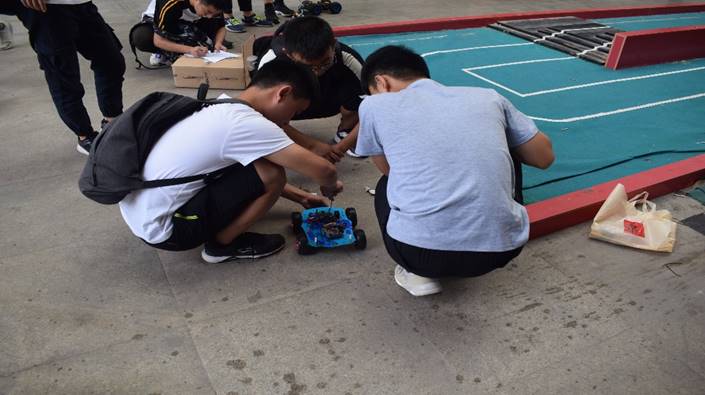 比赛伊始,李宁老师向同学们详细介绍了本次比赛的目的、背景以及规则。让同学们熟悉了比赛规则和具体要求。随后,雷旭老师上台发言,进行比赛现场的安排。两位老师短短几分钟的发言让同学们基本把握了自己本次比赛的方向,也更加坚定了同学们继续坚持下去的信心。随后,参赛队伍分成了三个大组,即舞蹈组、越野组、擂台组,并分别在三个不同的场地进行比赛,比赛进行得如火如荼,同学们充满了激情与希望。老师们依次观看每一组选手的作品展示,并耐心地进行评分,并在评分后帮助同学们进行分析,指导同学们完善自己的作品。