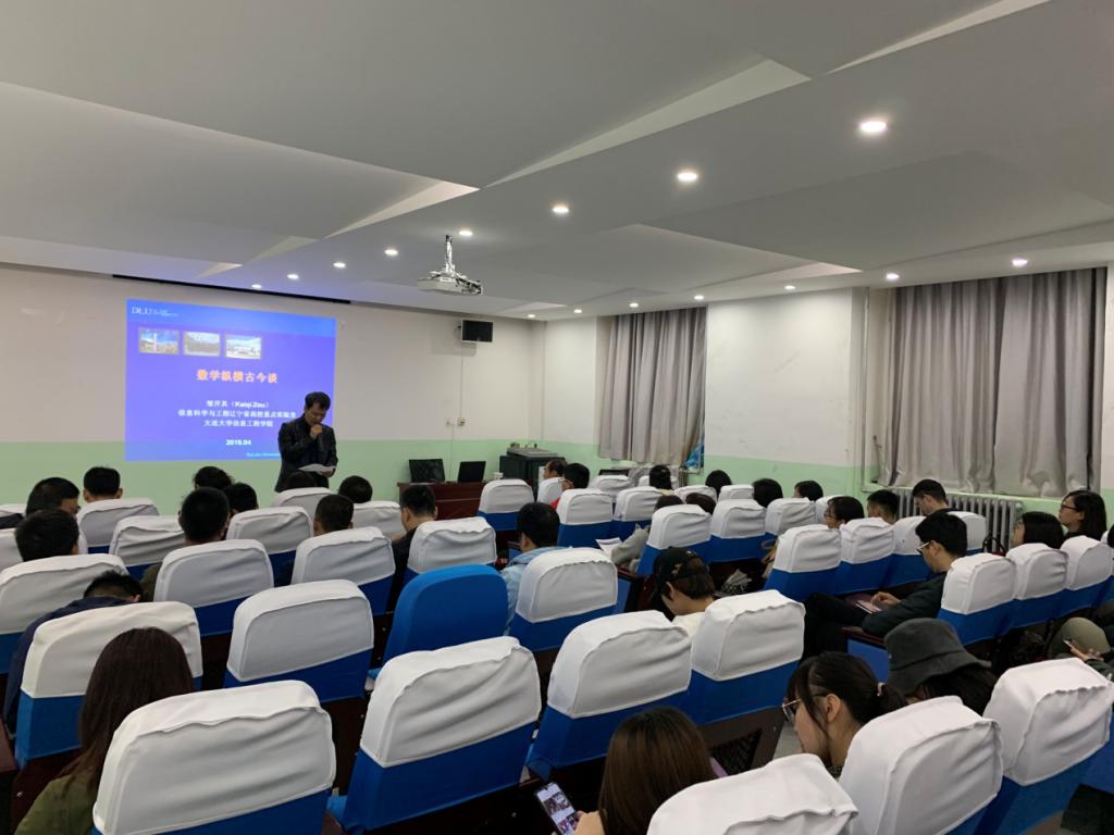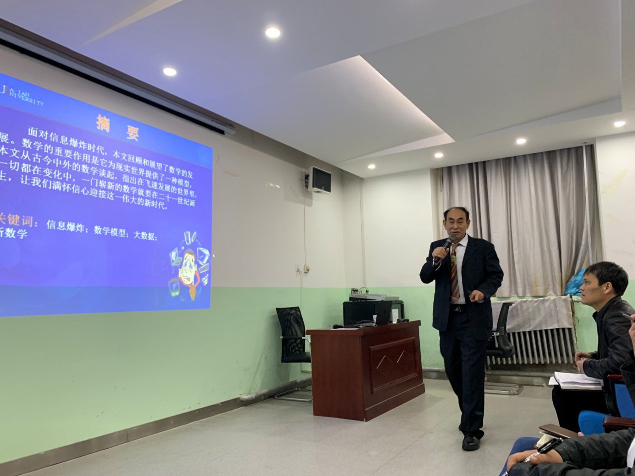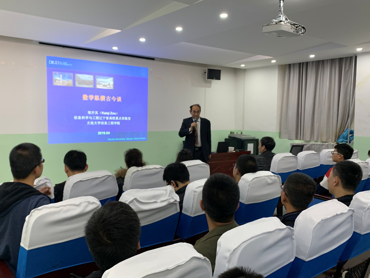 2019年4月12日下午2:30,Beat365唯一官方网站邀请大连大学学术梯队带头人、大连大学应用数学研究所所长邹开其教授在教学南楼108做了题为“数学纵横古今谈”的学术讲座。讲座由Beat365唯一官方网站院长岳忠玉主持,近百名师生参加。