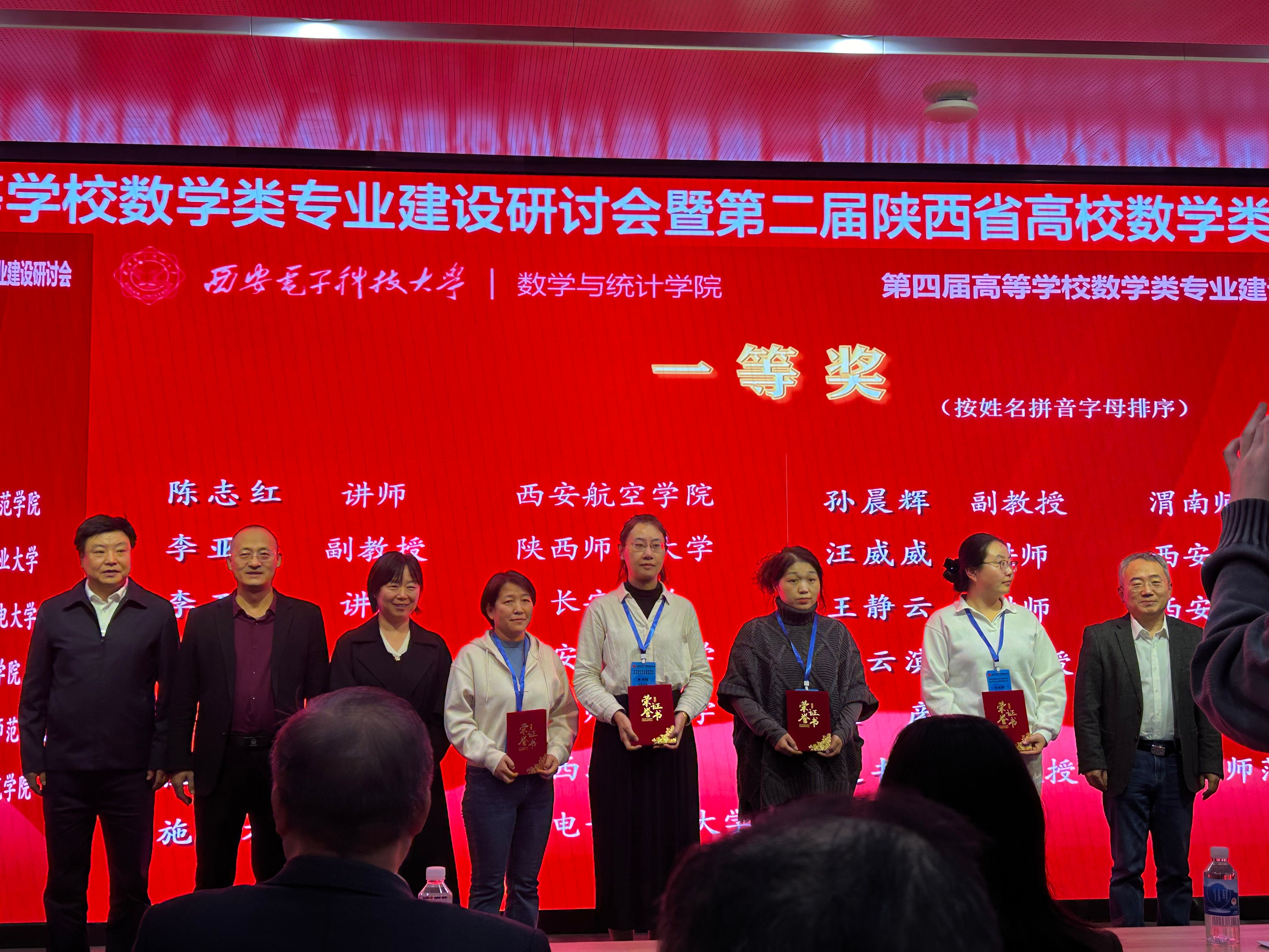 2024年11月2日第四届陕西省高等学校数学类专业建设研讨会暨第二届陕西省高校数学类专业课堂教学竞赛颁奖仪式在西安电子科技大学顺利举行。Beat365唯一官方网站院长李小光等一行6人参加了第四届陕西省高等学校数学类专业建设研讨会,期间举行了第二届陕西省高校数学类专业课堂教学竞赛颁奖仪式,Beat365唯一官方网站教师陈志红博士荣获教学竞赛一等奖。