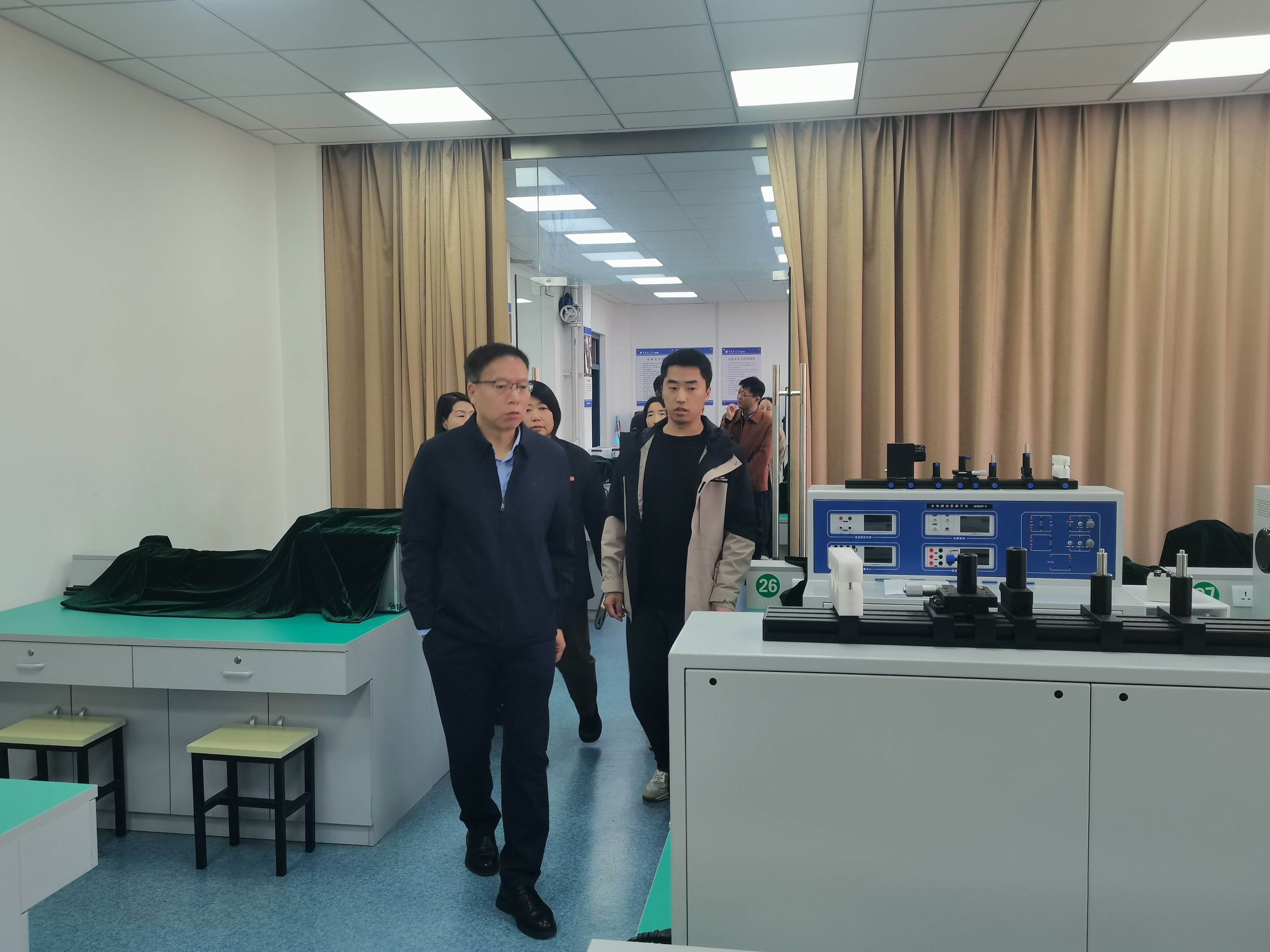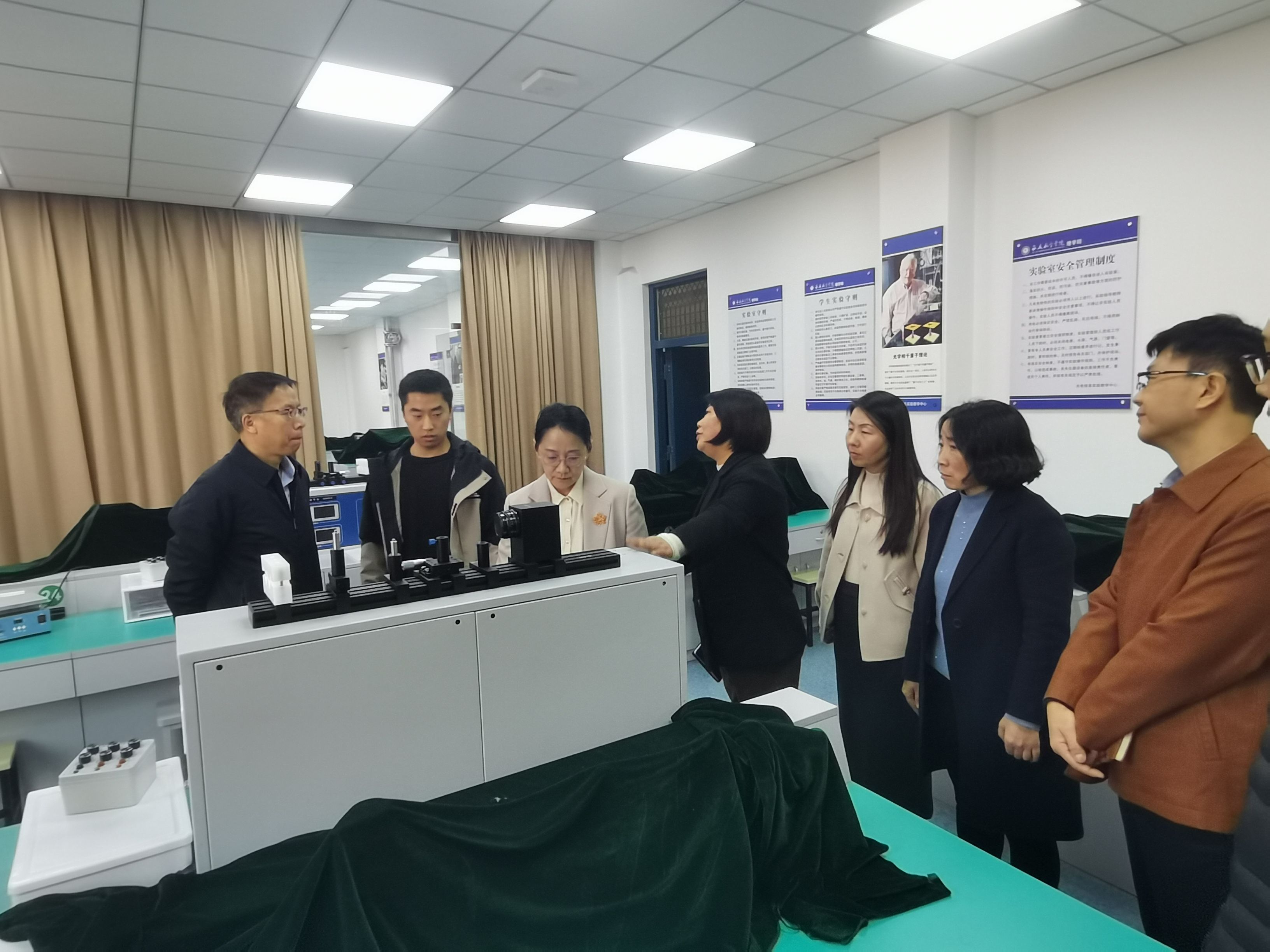 蒲永平校长详细询问了仪器提供的实验内容、学生分组实验以及特色实验开展等情况,强调要充分发挥实验室平台优势,推动教学与科研协同发展,培养更多高素质应用型创新人才。许文丹副校长就实验教学与行业需求,实验室安全和管理等情况进行详细询问,并给出具体改进建议和意见。