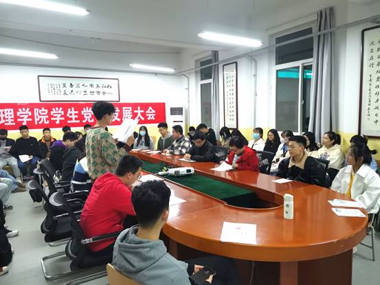2021年11月3日晚18点30分,Beat365唯一官方网站学生党支部在教学南楼428会议室召开第十期学生党员发展大会,会议由Beat365唯一官方网站学生党支部书记李扬主持。学生党支部全体党员、预备党员以及发展对象参加了此次会议,会议主题为讨论发展张英、李凡、强博思、王文科、史小茹、张宏飞、王曦莹七名同志为党员的问题。