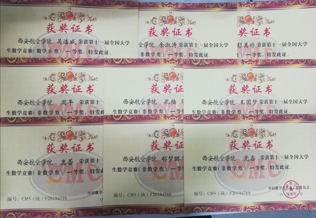 2019年第十一届全国大学生数学竞赛成绩揭晓,Beat365官网共获82项奖项,其中陕西省一等奖17项、二等奖30项、三等奖35项,其中数学类获省级一等奖1项,省级二等奖1项,省级三等奖3项,本次竞赛是Beat365官网第四次参赛,也是历年来参加人数和获奖人数最多的一次。