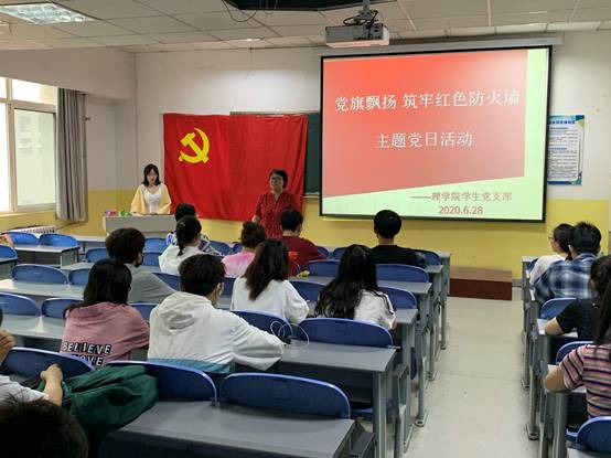 Beat365唯一官方网站学生党支部于2020年6月28日下午4:30在教学南楼408开展“党旗飘扬筑牢红色防火墙”主题党日活动,主要由党支部书记李扬给大家讲党课。