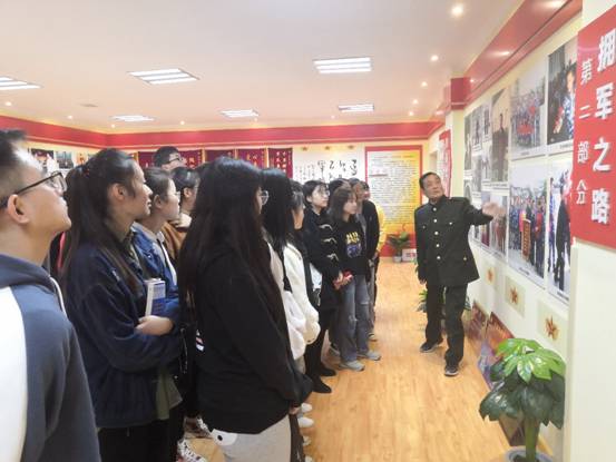 李新建老师从情系军营、拥军之路、团结协作和拥军硕果四部分对同学们进行了讲解,从基地中的每个照片、字画、锦旗以及各项荣誉证书都有着自己的一份故事,都是李新建老师长达18年拥军生涯的一个缩影。自1998年以来,李新建老师和他的文化拥军艺术团通过坚持不懈的努力,赢得了部队官兵的一致好评。中央电视台曾多次报道了他们的事迹,《解放军报》《香港文汇报》《人民日报》《人民军队报》等媒体也相继对他们进行了报道。李新建和他的同事们先后被军队的多个团级单位聘请为艺术指导、文化艺术客座教授、革命传统教育辅导员,并授予“荣誉军人”的光荣称号。