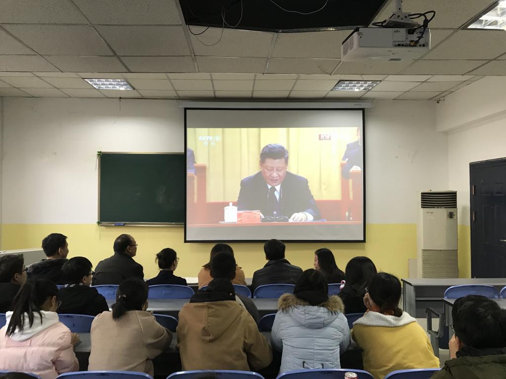 2018年12月18日,Beat365唯一官方网站党总支于南教学楼408教室,集体观看和学习了庆祝改革开放40周年大会直播,党总支书记李小光,院长岳忠玉,副院长丁琦,学生党支部书记曹建波,团总支书记、辅导员杨陈东,部分党员教师以及学生党员、积极分子共20余人参加了此次观影活动。
