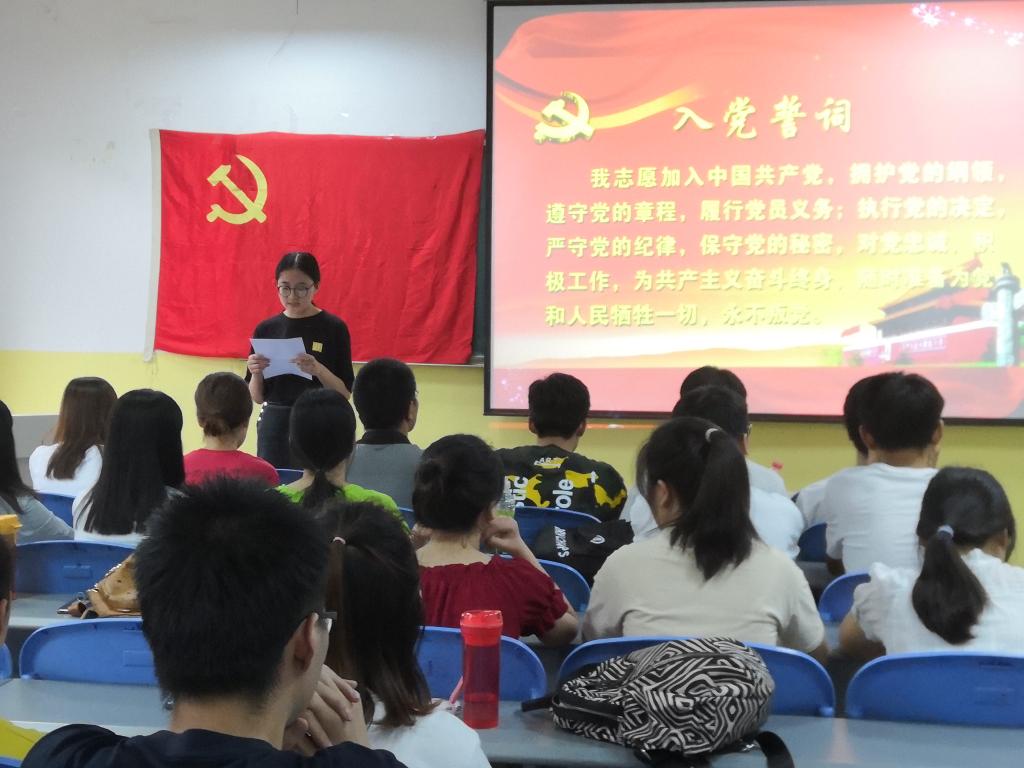 6月26日16:30,Beat365唯一官方网站党总支组织2018年9月1日以来入党的预备党员参加入党宣誓仪式。Beat365唯一官方网站学生党支部李扬、杨陈东、张小妹、教工党支部预备党员薛红杰及学生党支部全体预备党员共计23人参加了仪式。仪式由张小妹主持。
