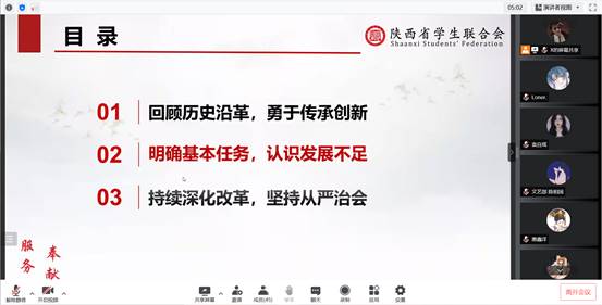 会上,张岩老师对团学组织各部门上学期的工作进行点评,肯定了同学们的工作成绩,表扬了在疫情防控志愿服务工作中表现优秀的同学,对本学期团学组织的工作做了安排和部署,鼓励同学们认真学习,提高工作能力,共同做好学生服务工作。学生会主席团成员许高博简要说明了本次会议的主要内容,将从“回顾历史前言,勇于传承创新”、“明确基本任务、认识发展不足”、“持续深化改革、坚持从严治会”三个方面对团学干部进行培训。