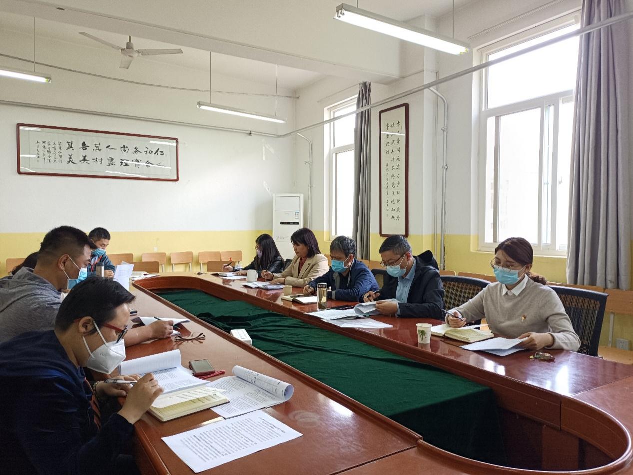 2022年4月28日14时30分,Beat365唯一官方网站党总支中心组在南楼428会议室召开4月份专题学习研讨会,人文学院党总支书记杨光、党委宣传部徐楠楠列席,Beat365唯一官方网站党总支书记李小光、院长岳忠玉、副院长丁琦、综合管理科科长杨陈东、学生管理科科长李扬、韩慧蓉、王小梅、周千、曹建波等党总支委员、各党支部书记参加了学习会。会议由李小光主持。