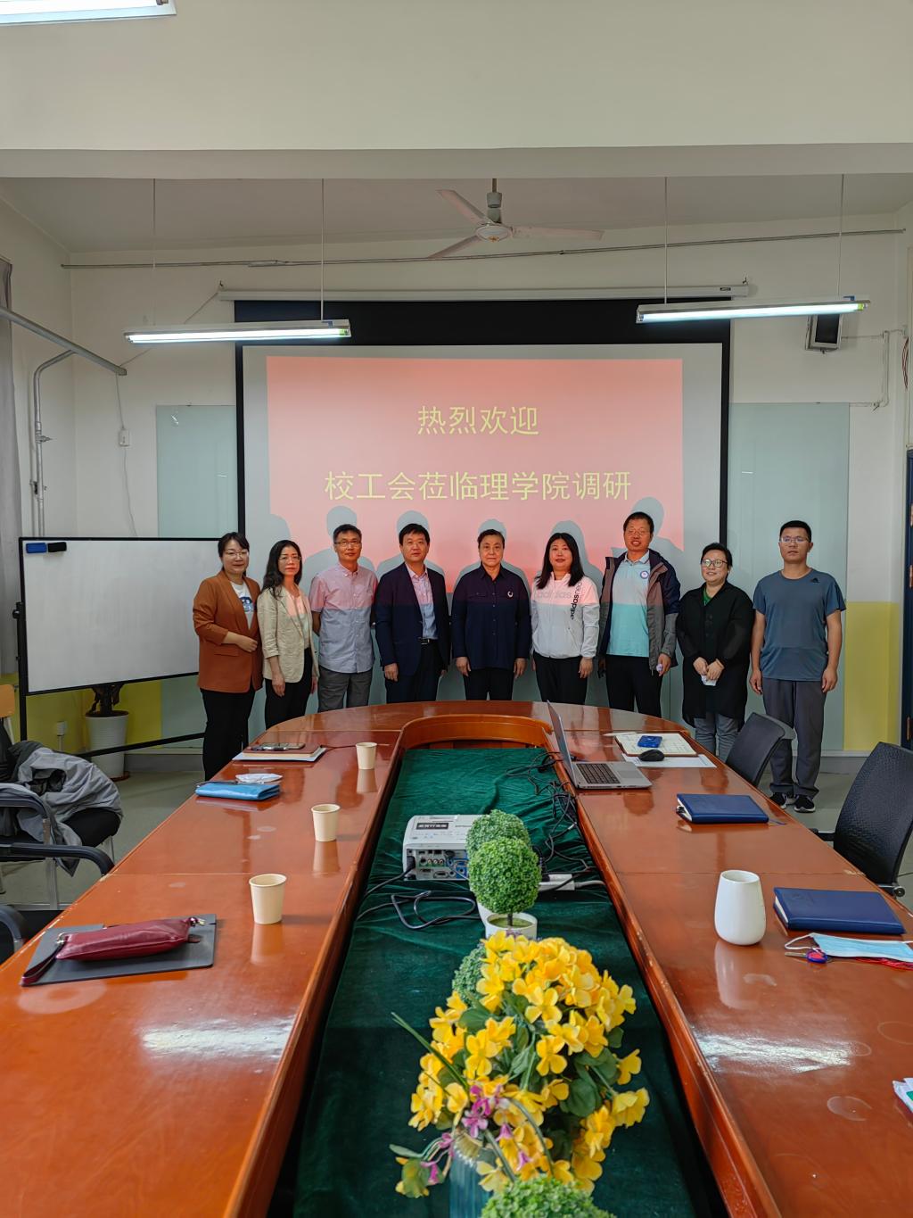 5月23日上午,校工会主席谭少敏、副主席张瑞民等一行莅临Beat365唯一官方网站调研,Beat365唯一官方网站党总支书记胡红亮、院长李小光、副院长丁琦、分工会主席潘灵刚和分工会委员等参加会议。会议在南教学楼428会议室举行,会议由胡红亮主持。