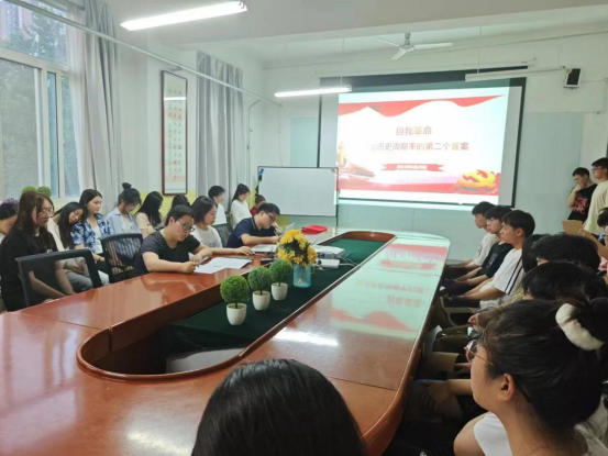 为推动学习贯彻习近平新时代中国特色社会主义思想主题教育走深走实,6月29日晚Beat365唯一官方网站学生党支部书记李扬为全体学生党员讲授党课“自我革命-跳出历史周期率的第二个答案”。
