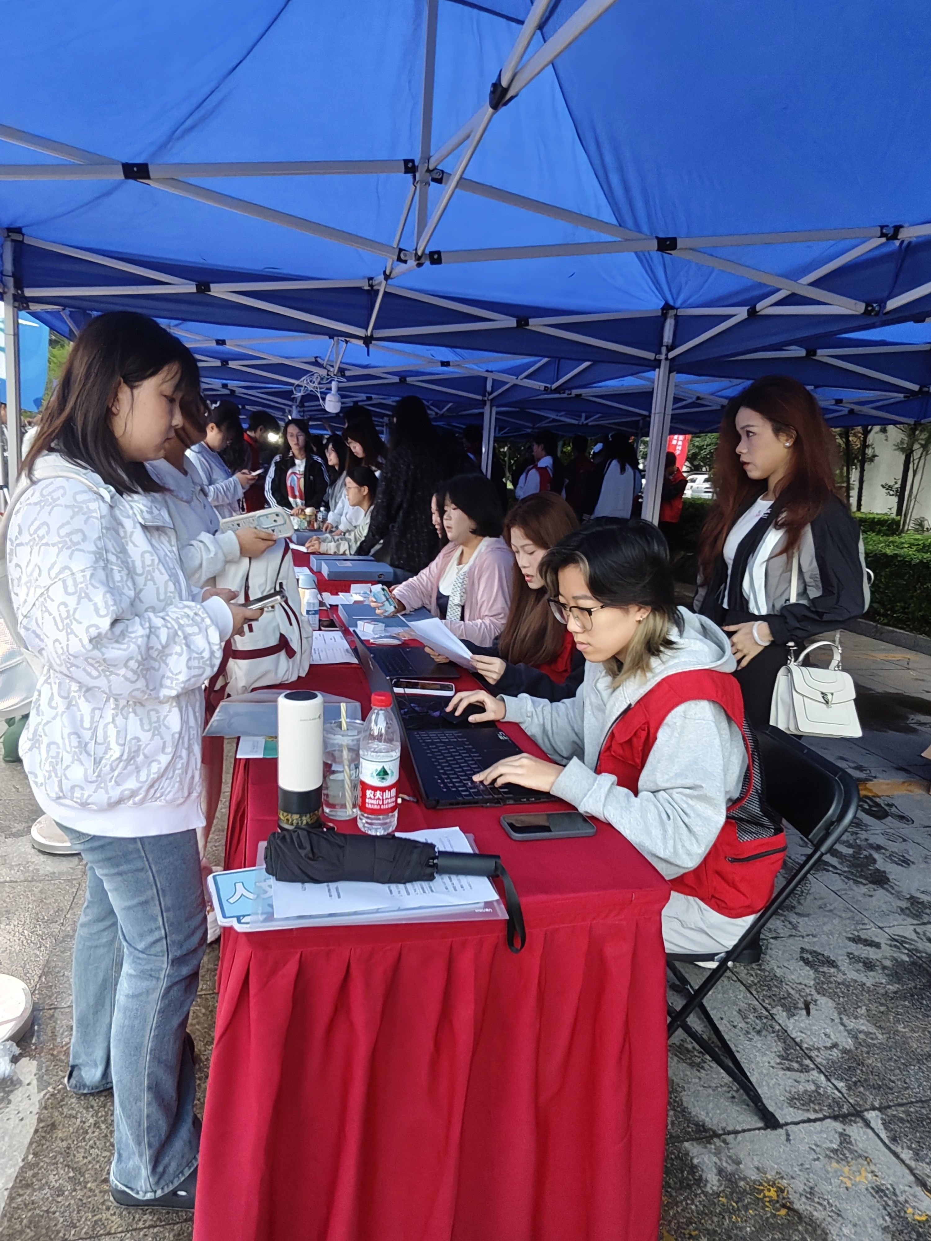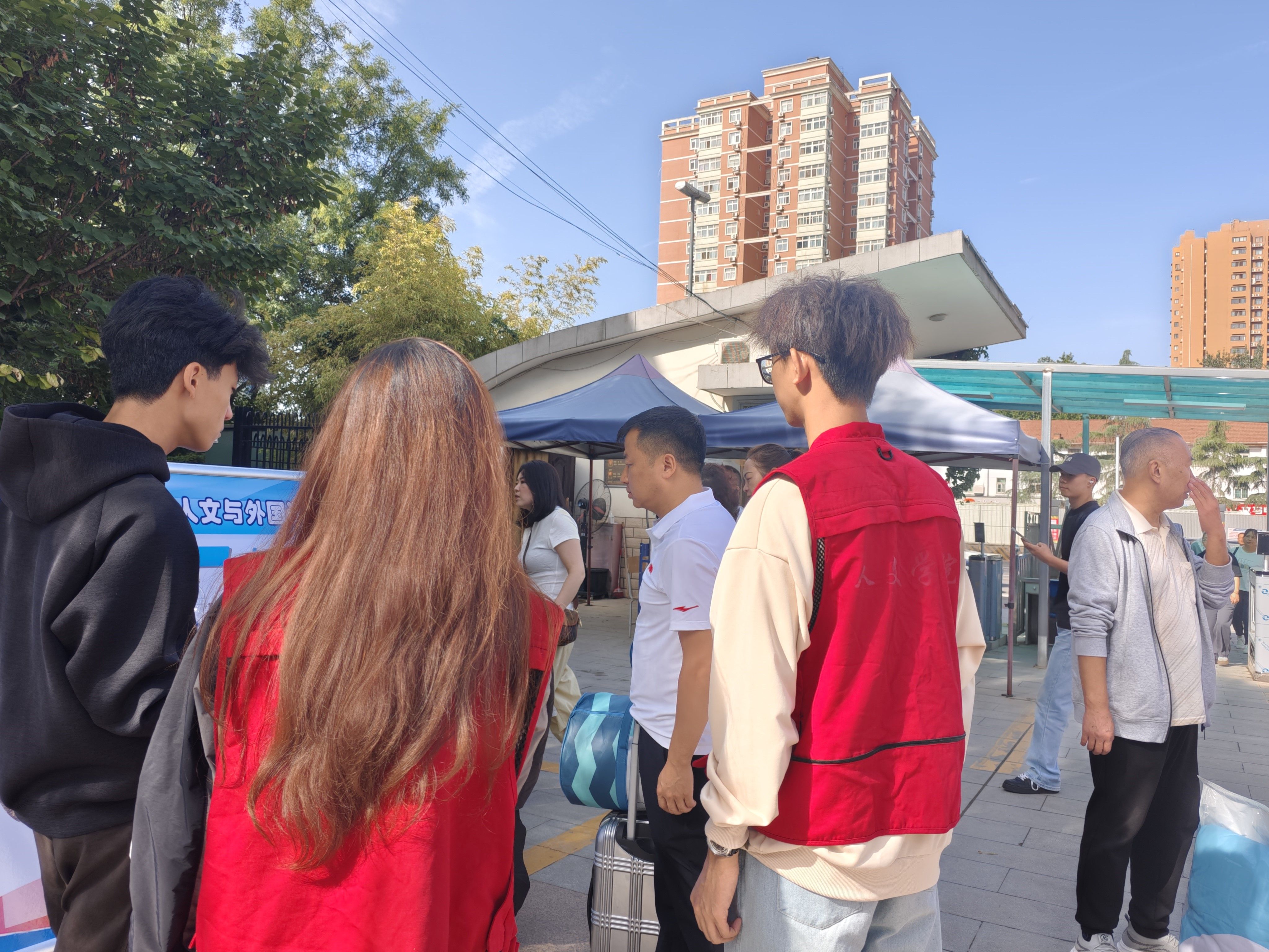 在校园入口、学院报到处、宿舍楼下设立3个党员服务站点,党员们佩戴党徽、身穿志愿者服装,分工负责新生身份核验、基本信息填写、宿舍分配、伴手礼发放、校园卡发放、行李搬运、宿舍指引等工作。针对新生及家长对校园环境不熟悉的问题,党员们提前绘制《校园生活导航图》,标注教学楼、食堂、图书馆、宿舍等关键场所位置,一对一提供路线指引;对携带大件行李的新生,主动上前帮忙搬运,累计服务新生及家长530余人次,用热情周到的服务让新生感受到“家的温暖”。